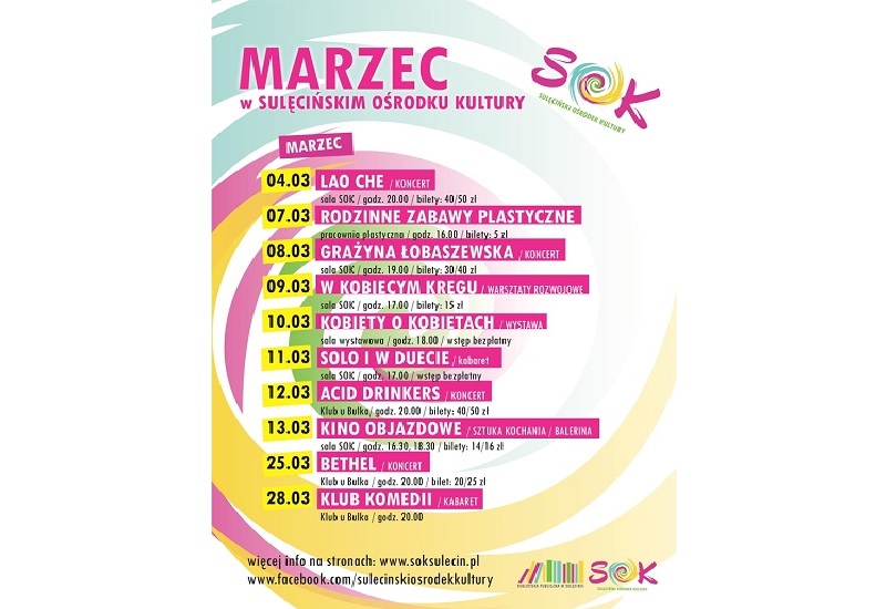 Marzec w kulturze Mówią, że w marcu jak w garncu – marzec w Sulęcińskim Ośrodku Kultury będzie naprawdę bardzo ciekawy.…