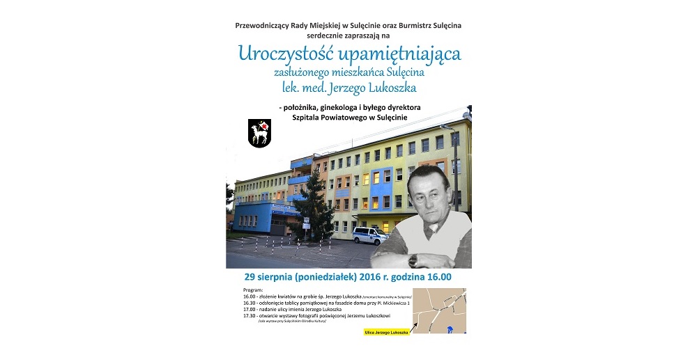 Burmistrz Sulęcina oraz Przewodniczący Rady Miejskiej w Sulęcinie serdecznie zapraszają do wzięcia udziału w uroczystości upamiętniającej pana Jerzego Lukoszka (20.08.1931…