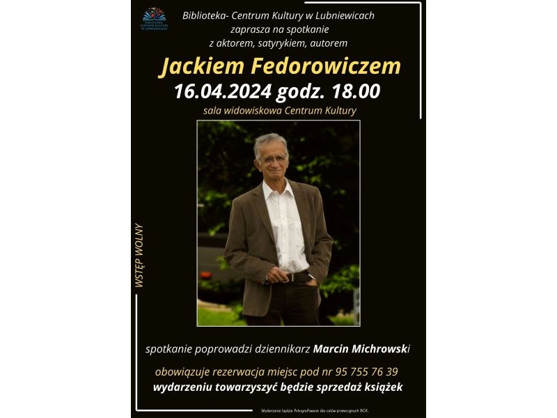 Spotkanie z Jackiem Fedorowiczem 16 kwietnia zapraszamy na spotkanie z Jackiem Fedorowiczem: aktorem, satyrykiem, felietonistą, prezenterem telewizyjnym. Jeśli macie ochotę…