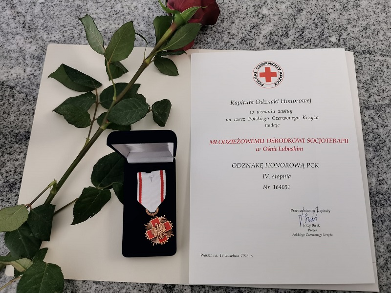 Odznaka Honorowa PCK Kapituła Odznaki Honorowej w uznaniu zasług na rzecz Polskiego Czerwonego Krzyża nadała dla Młodzieżowego Ośrodka Socjoterapii w…
