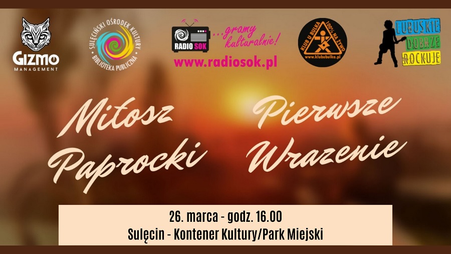 Miłosz Paprocki – „Pierwsze wrażenie” Zapraszamy na koncert plenerowy przy Kontenerze Kultury w Parku Miejskim w Sulęcinie:Miłosz Paprocki, chłopak z…