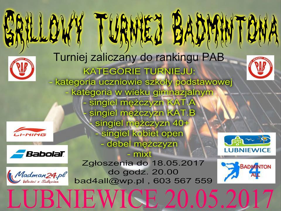 Halowy Turniej Badmintona – Lubniewice 20.05.2017r. Zapraszamy! Madman