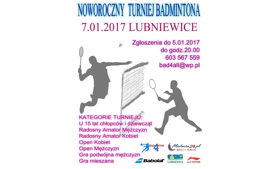 7 stycznia 2017 zapraszamy na Noworoczny Turniej Badmintona Madman