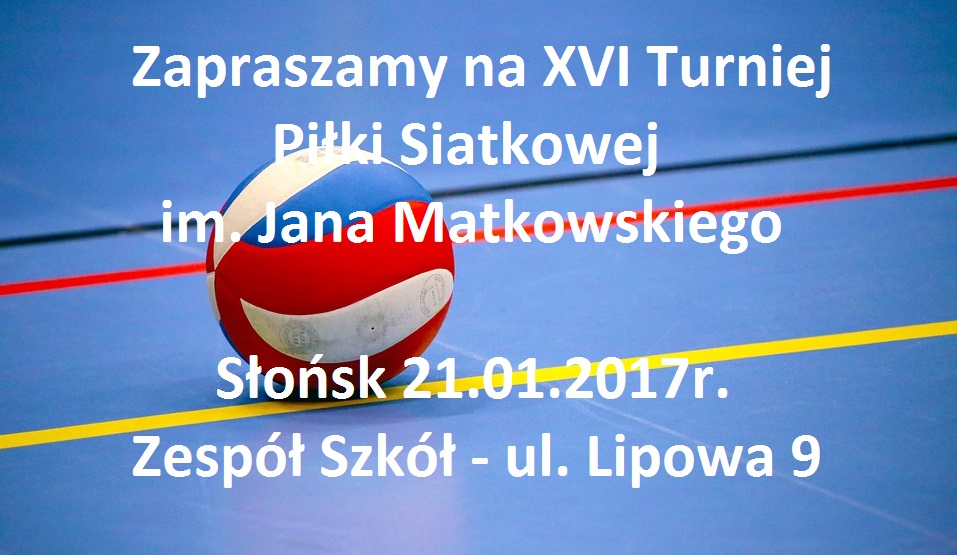 Zapraszamy na turniej piłki siatkowej 16 Turniej Piłki Siatkowej im Jana Matkowskiego w Słońsku odbędzie się dnia 21.01.2017 o godz…