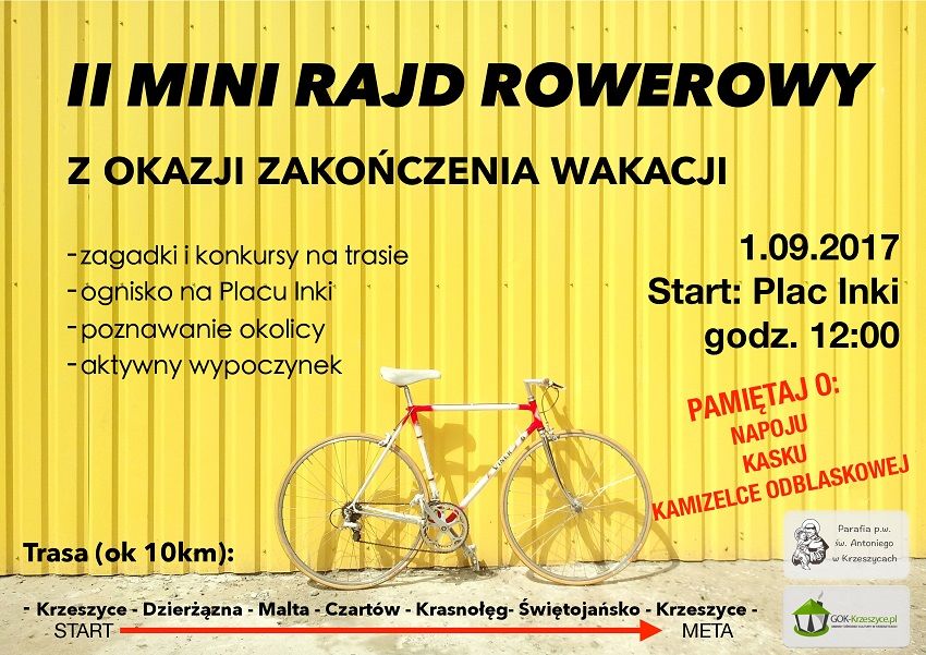 Krzeszyce – Cykliści na start II Mini Rajd Rowerowy W piątek 1 września o godz. 12.:00 odbędzie się II mini…