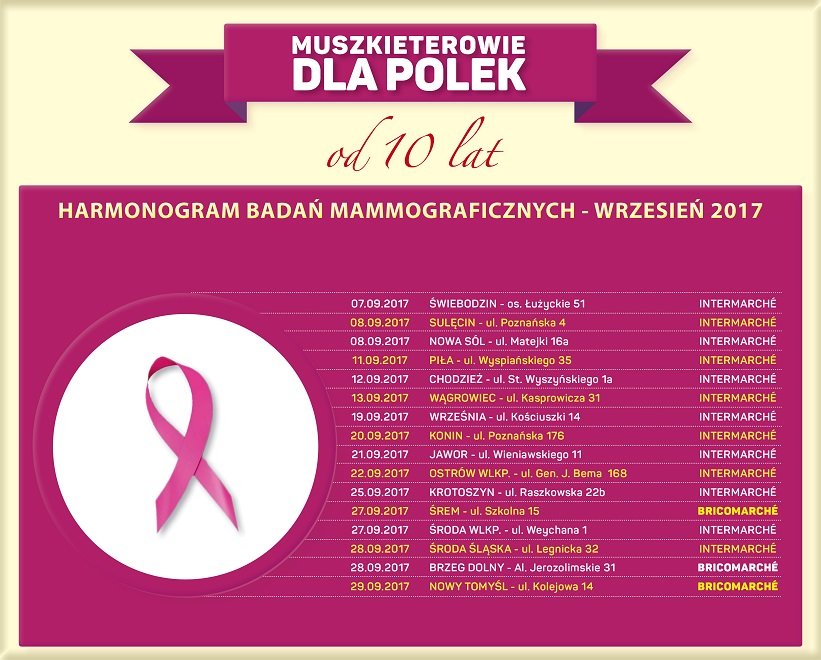 ZADBAJ O SWOJE ZDROWIE: PRZEBADAJ SIĘ Z MUSZKIETERAMI W SULĘCINIE Badania mammograficzne 8 września br. mieszkanki Sulęcina będą miały okazję…