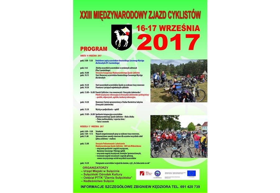 XXXIII Międzynarodowy Zjazd Cyklistów Zjazd Cyklistów 2017 Zjazd Cyklistów 2017 – Komunikat o utrudnieniach w ruchu miejskim! SZANOWNI MIESZKAŃCY SULĘCINA…