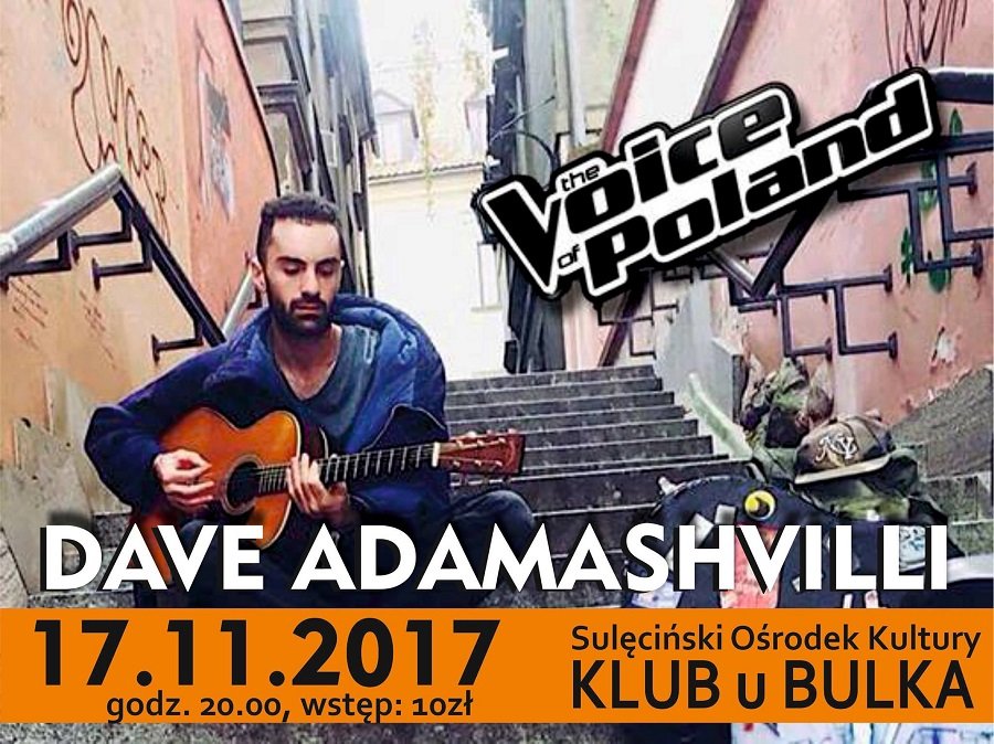 Sulęciński Ośrodek Kultury/Klub u Bulka Dave Adamashvilli Koncert akustyczny data: 17.11.2017 (piątek) godz. 20:00, wstęp: 10zł (bilety przed koncertem) miejsce:…