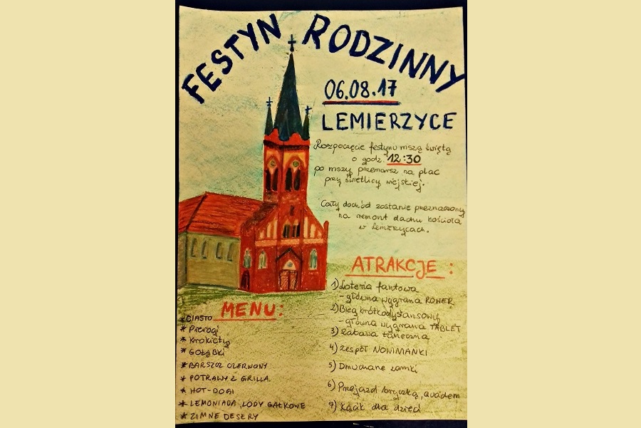 6 sierpnia zapraszamy na Festyn Rodzinny do Lemierzyc Festyn w Lemierzycach z którego cały dochód przeznaczony zostanie na remont dachu…