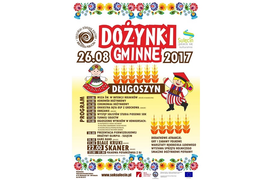 Długoszyn – 26.08.2017r. Dożynki Gminne Drodzy Mieszkańcy Gminy Sulęcin! Nadchodzi czas żniw i tym samym czas corocznych Dożynek Gminnych, które…