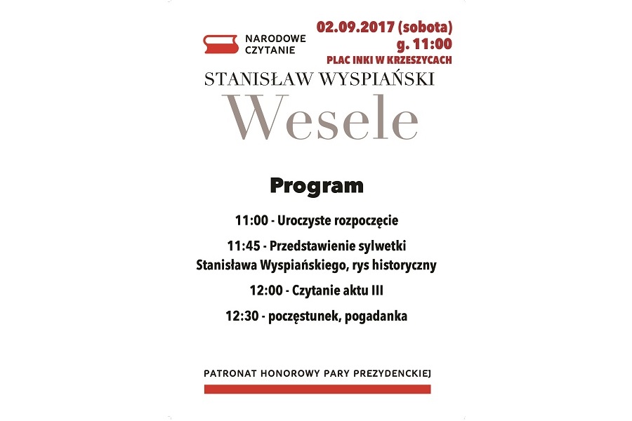 „Stół Weselny w Krzeszycach” Krzeszyce – Narodowe Czytanie odbędzie się w formie imprezy plenerowej. Uczestnicy usiądą przy jednym wspólnym stole…