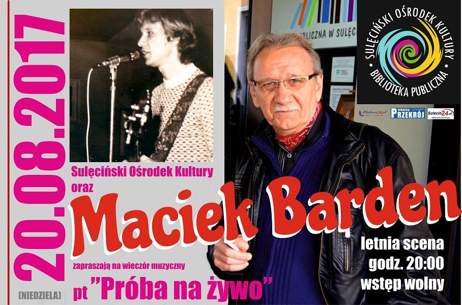 „Próba na żywo” Maciek Barden – koncert 20.08.2017 godz. 20:00 wstęp wolny letnia scena SOK Śpiewa od szóstego roku życia,…