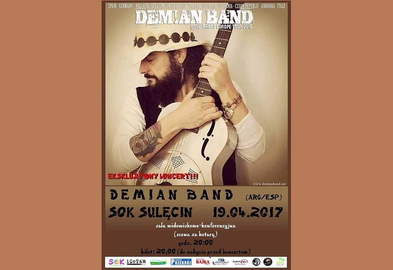 Ekskluzywny koncert: DEMIAN BAND (ARG / ESP) SOK SULĘCIN Scena Za Kotarą (Sala Widowiskowo-Konferencyjna) ul. Moniuszki 1, SULĘCIN Data: 19.04.2017…