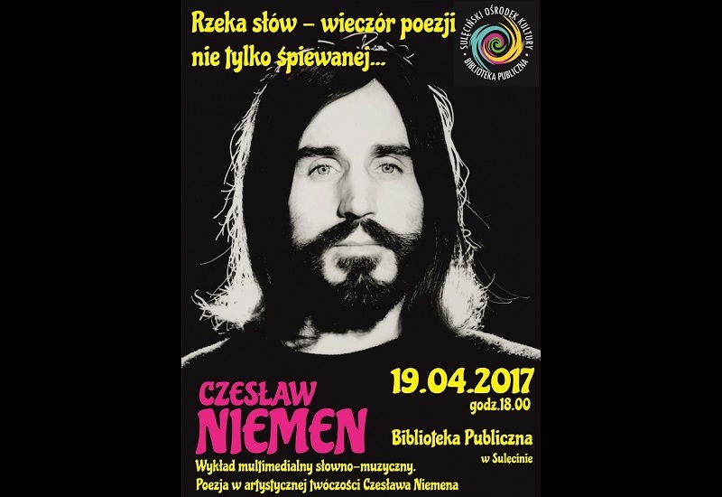 Rzeka słów, czyli wieczór poezji nie tylko śpiewanej: Poezja w artystycznej twórczości Czesława Niemena. 19 kwietnia, godzina 18:00 Czytelnia Biblioteki…