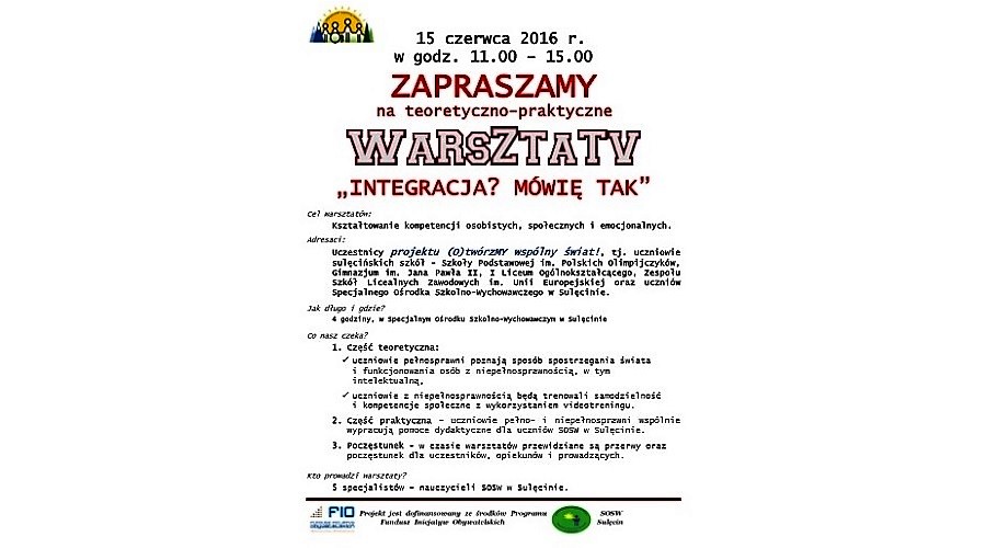 Specjalny Ośrodek Szkolno-Wychowawczy zaprasza 15 czerwca na warsztaty teoretyczno-praktyczne. „INTEGRACJA? MÓWIĘ TAK” Madman