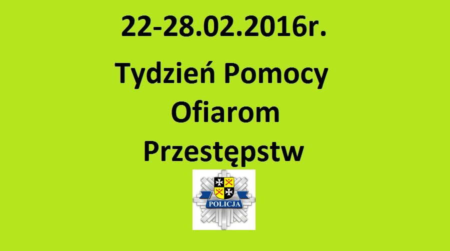 Tydzień Pomocy Osobom Pokrzywdzonym Przestępstwem W ramach obchodów „Tygodnia Pomocy Osobom Pokrzywdzonym Przestępstwem” od 22 do 28 lutego 2016 roku…